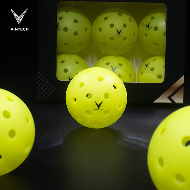 Bóng Pickleball VIN TECH được thiết kế theo tiêu chuẩn thi đấu phổ biến, đảm bảo: Hình dạng tròn đều, cân bằng tốt, độ nảy ổn định, quỹ đạo bóng chính xác, phù hợp cho thi đấu, tập luyện và giải phong trào – bán chuyên. Thiết kế này giúp người chơi dễ làm quen, kiểm soát bóng tốt và duy trì nhịp độ trận đấu ổn định.